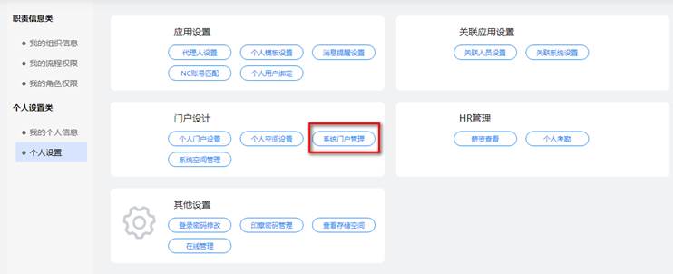 图 个人设置-系统门户管理