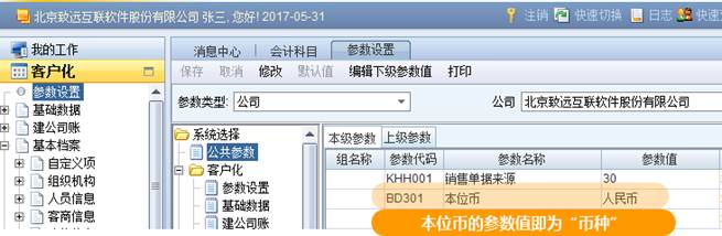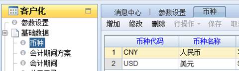币种:输入NC系统“本位币”,默认”CNY”。在“参数设置-公共参数”中本位币的参数值既是。在“客户化-基础数据-币种”可找到对应的币种代码。