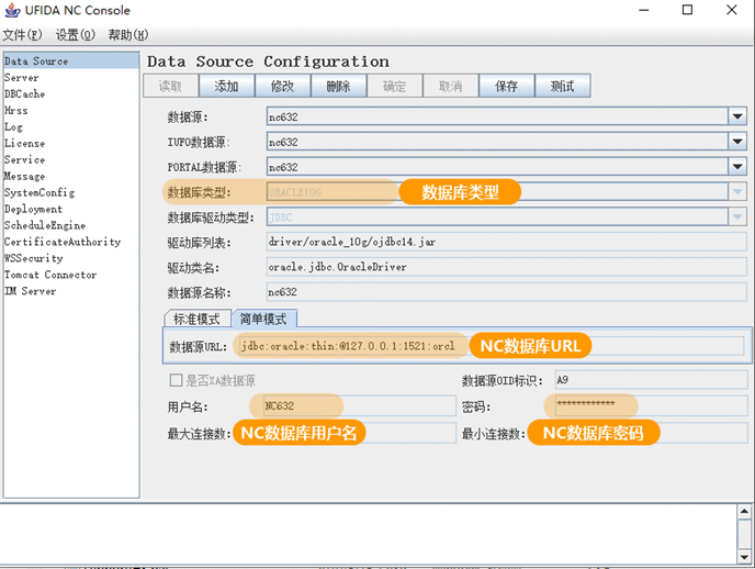 功能说明:配置凭证对应的NC系统及NC数据库信息。