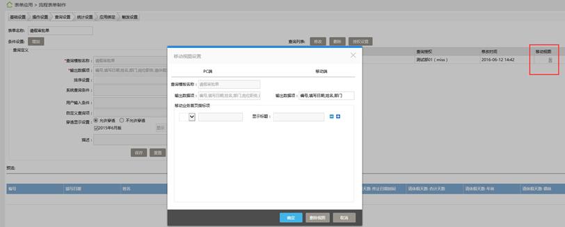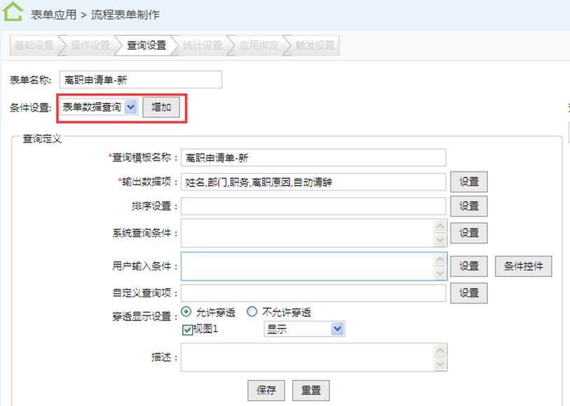 n 操作说明:设置表单查询条件。查询设置可以在新建表单时一并完成,也可以先跳过,以后通过