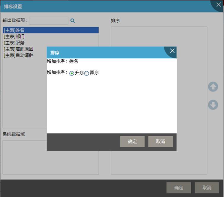 第三步(可选):单击排序方式右边的【设置】,设定查询列表的排序方式。如图所示: