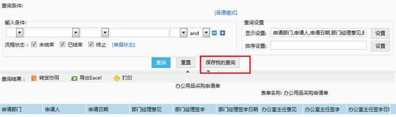 当用户设置了自定义查询项时,被授权用户再查询时,可以保存为我的查询。如图所示: