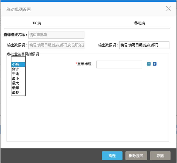 可设置移动业务首页指标项,如图所示: