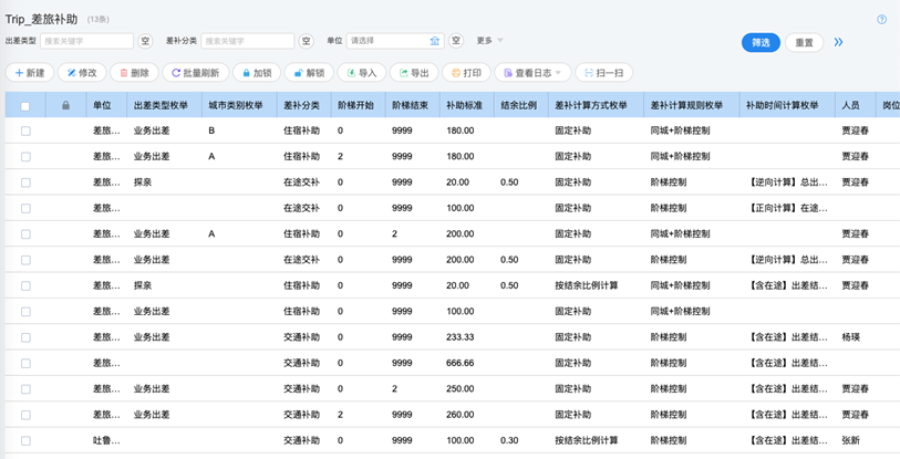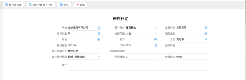 【适用范围】:可选(人员/部门/岗位/职务/单位),必填;即可以按照不同的适用范围设置差旅补助标准。
