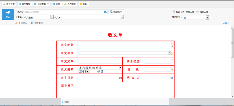 【存为模板】将编辑好的收文存为模板后,方便下次调用。